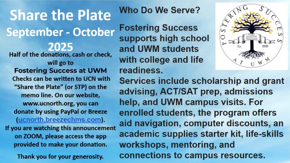 Share the Plate Recipient for September and October, 2020 In the months that UCN has been closed due to COVID-19, members and friends have been asked to mail in […]